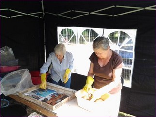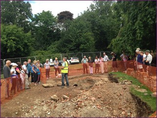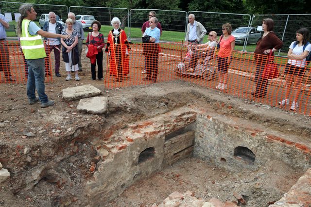 The culmination of this year's two-week dig, when lead archaeologist Les Capon showed over 150 around the site, explaining what has been discovered and showing some of the finds. The guests included the Mayor, Counsellor George Cooper and his wife, Judith, the Mayoress. The Stables and Dovecote were open to visitors, and The Gardens Cafe was also popular. And the digging continued to the last minute!